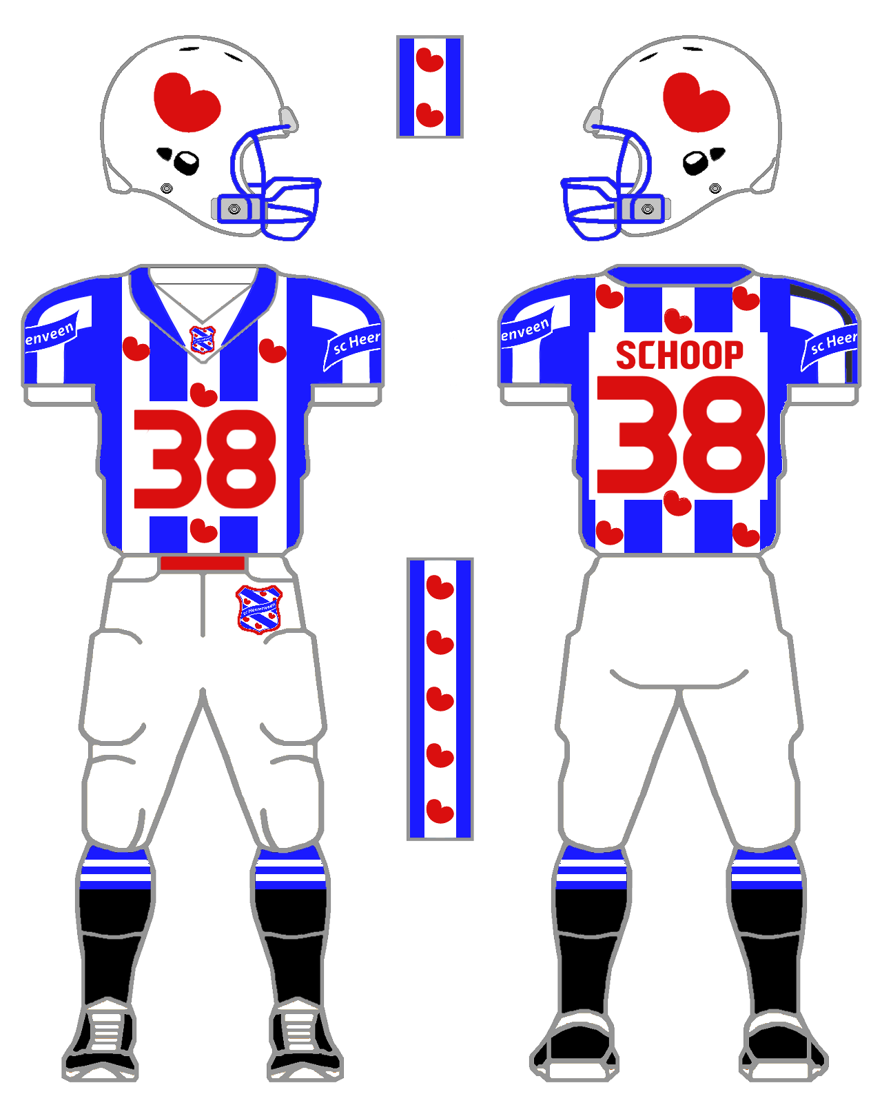 Sheriff is an Adidas squad and for my inspiration I decided to pattern my "Real World" template on a league that has recently changed to the Three-Stripes: The CFL. I chose a "Real World" template similar to designs worn by Calgary, Saskatchewan and the BC Lions. I used a three stripe design similar to the multiple-line style of the Hamilton Ti-Cats (and maybe just a little tip-of-the-cap to Adidas) for the pant stripe and around the neck.